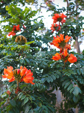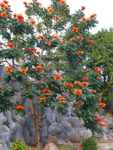 The growth rate of African Tulip will vary greatly depending on soil type, sunlight, temperature and other factors. A few leaves are often trimmed prior to shipping to reduce transpiration and travel stress.