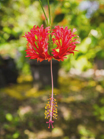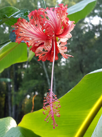 You don’t have to live in the tropics to grow stunning Hibiscus flowers. Hibiscus are well suited to container growing, drought tolerant and due to their minimal foliage they don’t topple in the wind. See care and container size below.Our Schizopetalus Coral Fringed plants allow you to enjoy aromatic tropical blooms in the first year. All the Schizopetalus Coral Fringed we offer are vegetatively propagated from healthy flowering mother stock, grown right here in our nursery. This means, you receive an exact clone, true in form and bloom and won’t have to wait years to enjoy fresh flowers, as is often the case with seed grown or tissue culture plants. Truly a superior Hibiscus!The growth rate of Schizopetalus Coral Fringed will vary greatly depending on soil type, sunlight, temperature and other factors. A few leaves are often trimmed prior to shipping to reduce transpiration and travel stress.