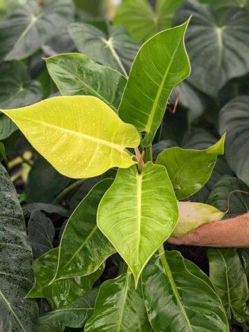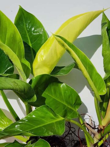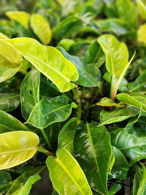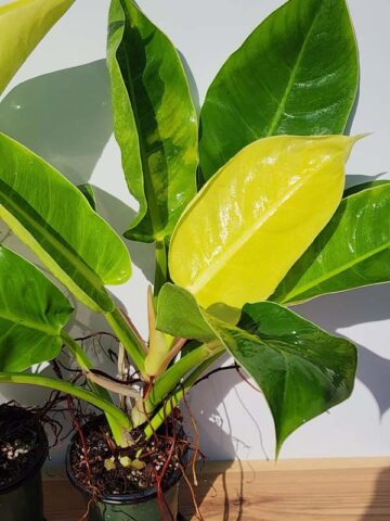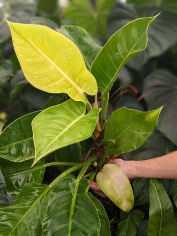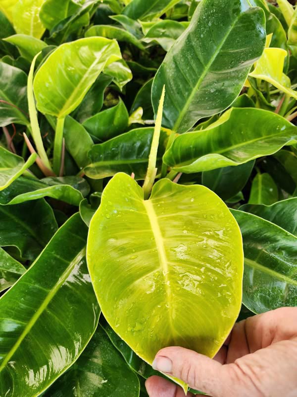 A+ Philodendron Moonlight – Philodendron Moonlight, renowned for its outstanding bright lemon-colored new leaves, undergoes a gradual transition to a lime green as the leaves reach maturation. With a growth limit of approximately 20 inches in height, this compact variety is ideally suited to indoor settings, making it a popular choice for houseplants. The plant thrives in shade, demonstrating robust health and hardiness in medium to low light environments. Although the Sun Red variant is inherently a climbing type, it can be maintained in a bushy form with a simple trim once or twice annually. These tropical plants, known for their well-established root systems, are remarkably healthy.