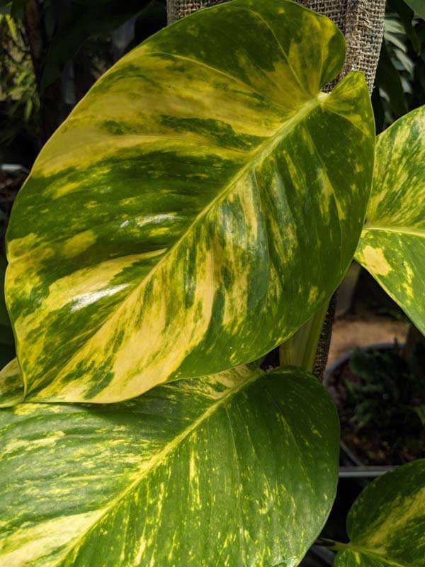 Our plants are grown in conditions akin to a natural, humid rainforest, using minimal pesticides. Occasional leaf drop, spotting, or browning, especially in varieties with significant white, are normal. In our nursery, plants thrive under 40-80% shade cloth. If grown outdoors, direct exposure to full sun may cause leaf burn. We suggest gradually introducing the plants to sunny areas over a week or so to reduce stress for optimal results. Despite our high standards in plant propagation, we can't assure future variegation patterns, coloration, survival or growth rate. Individual plants may vary, even though our mother plants have thrived for over 20 years. We guarantee all variegation is natural without any Chemically Induced Variegation (NO C.I.V.)