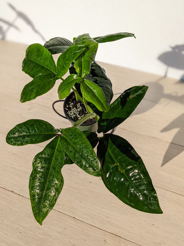 Lg. Homalomena Truncata Borneo Black Elephant Ear Plant in 4” potAlternative view of Lg. Homalomena Truncata Borneo Black Elephant Ear Plant in 4” pot
